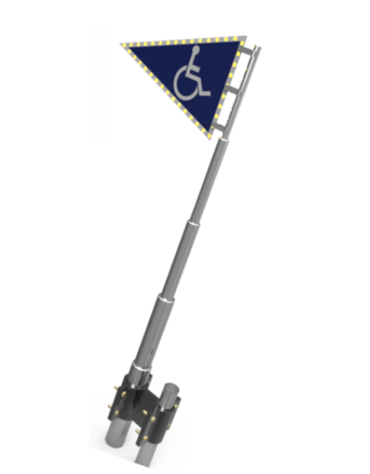 The safety pennant flag that creates a 2-for-1 bonus in the realm of visibility. Not only is visibility increased for the operator to be seen physically by others, but now they are undeniably aware of your presence. (Phase 2 Model shown)